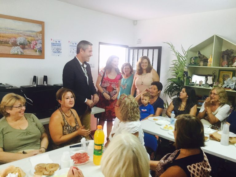 Mijas (Málaga), 3 de Septiembre de 2015.- „Yo sé que tenéis necesidades aquí en la asociación,. Pero quiero ser muy sincero, el ritmo de ejecución de esos compromisos sea lo más rápido posible, pero estamos condicionados por el dinero. Aún así queremos poner por delante a las personas que es lo prioritario“. Juan Carlos Maldonado, el primer edil (C´s) Estas necesidades quedarán reflejadas en los presupuestos de 2016 tal y como se ha comprometido hoy el Alcalde que ha sido recibido en la sede de la asociación por medio centenar de afectadas por esta enfermedad que celebraban un desayuno al que ha sido invitado. „Es una alegría para mí poder compartir este rato con vosotros. Como os dijo las personas son el eje de  nuestra política. Sabemos de vuestra realidad aunque, hasta que no se vive uno no sabe nunca de lo que sufre otro en toda su magnitud„. La Presidentade la Asociación de Fibromialgia, Fátiga Crónica y otras enfermedades reumáticas, Mercedes González Estevez,  que defiende el proyecto de www.asociacionapaffer.org, le ha mostrado a Maldonado con diligencia y detalle el lugar donde se desarrollan la practica totalidad de las terapias dirigidas a mujeres afectadas por Fibromialgia, unas 200, siempre por voluntarios que prestan esta asistencia.„Estoy muy contenta con su visita. Ha sido muy amable y espero que nos escuche y que se repita muchas veces“. A dicho desayuno informal y distendido también ha acudido la concejala de Renta Básica y Atención Ciudadana, Carmen Carmona (C´s), Nuria Rodríguez Cubero de Movilidad y Transportes (C´s) y José Carlos Martín de Obras e Infraestructuras (C´s) que se ha interesado por el estado de las grietas y deficiencias que presentan algunos muros de las instalaciones de la sede que necesitan de trabajos de reparación. En este sentido, la delegación quiere ir avanzando para tomar medidas y llevar adelante los trabajos. Por otro lado, el Alcalde también se ha desplazado esta misma mañana hasta el Hogar de Mayores de Las Lagunas para tratar cuestiones relativas a la parcela que ya se cedió en su día por parte del Ayuntamiento para desarrollar la Residencia concertada de mayores y Centro de Día por parte de la Junta de Andalucía que de momento no ha ejecutado el proyecto para las instalaciones ni lo ha dotado de plazas. Por ello Maldonado mantendrá una reunión con el grupo de Ciudadanos en el Parlamento Andaluz y así poder impulsar el proyecto en el menor tiempo posible.