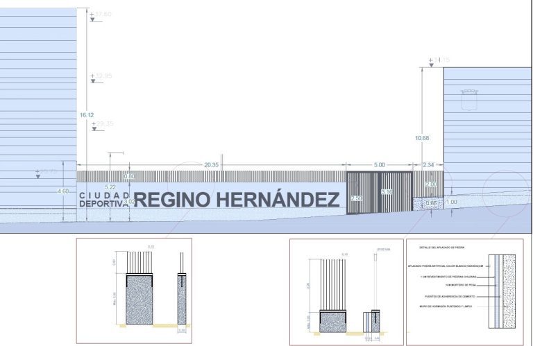 En la planta baja se ubicarán los vestíbulos de acceso principal, vestuarios y administración. Con el objeto de agilizar el tránsito de personas y evitar aglomeraciones innecesarias, se prevé la implantación de una puerta de conexión desde el vallado del campo de fútbol, que permitirá el acceso directo a los vestuarios sin pasar por la plaza central.