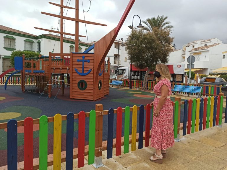 Mijas, 09 de agosto de 2021.- La concejala de Parques y Jardines, Laura Moreno, ha visitado esta mañana el Parque El Barco de La Cala para comprobar de primera mano el vallado perimetral que se ha instalado en esta zona de juegos. „Se ha cambiado todo el perímetro del Parque del Barco porque no estaba completo y se ha adaptado el nuevo a la normativa vigente, tal y como se está haciendo en todos los parques del municipio“, afirma la edil.