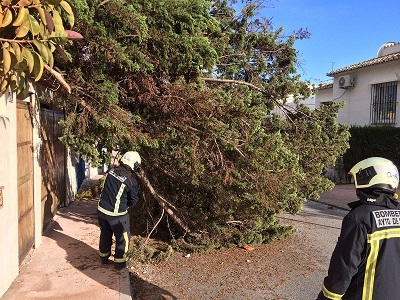 15 de Febrero de 2016. Desde ayer tarde a las 20:00 horas, el equipo de Bomberos junto a los Servicios Operativos y la Policía Local de Mijas, alertó a la ciudadanía sobre las fuertes rachas de vientos que se prevén que durarán hasta el final del día de hoy con máximas recogidas de hasta 80 Km/hora.