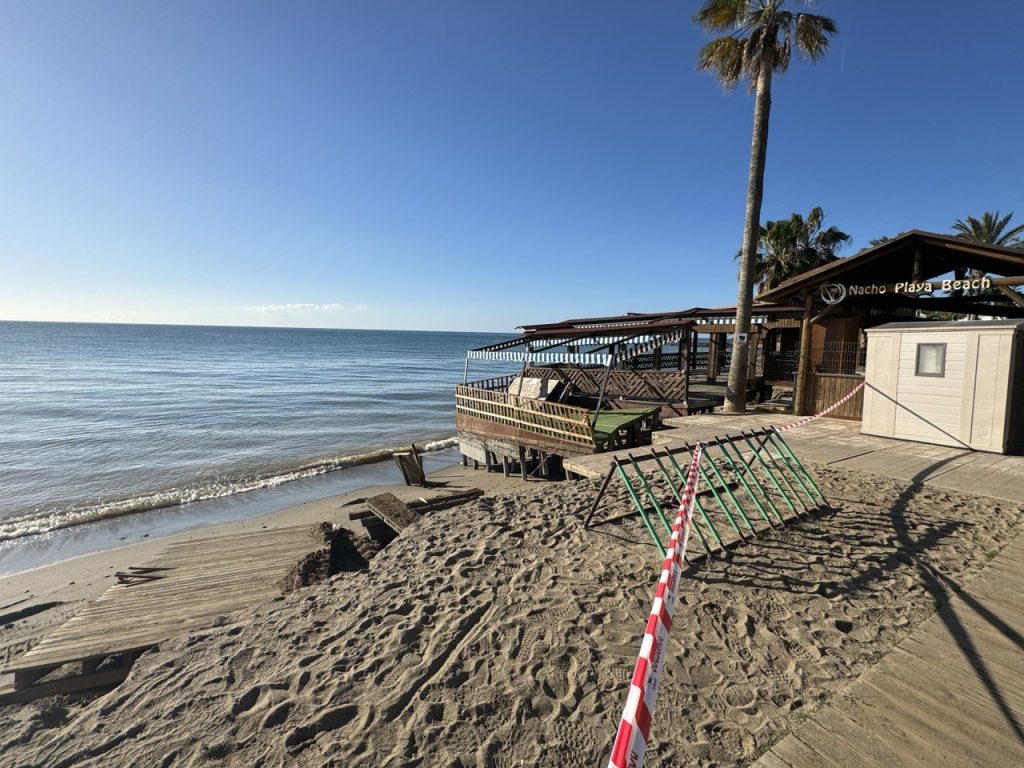 Además, en la playa de El Bombo ha resultado gravemente dañado un chiringuito, ya que parte del mismo ha quedado “colgando” sobre la arena. Daniel Gómez ha indicado que también se han visto afectadas, aunque en menor medida, las playas de Los Cordobeses y la zona de El Almirante, además unos 140 metros de la Senda Litoral, lo que ha obligado a cerrar el paso en determinados tramos.
