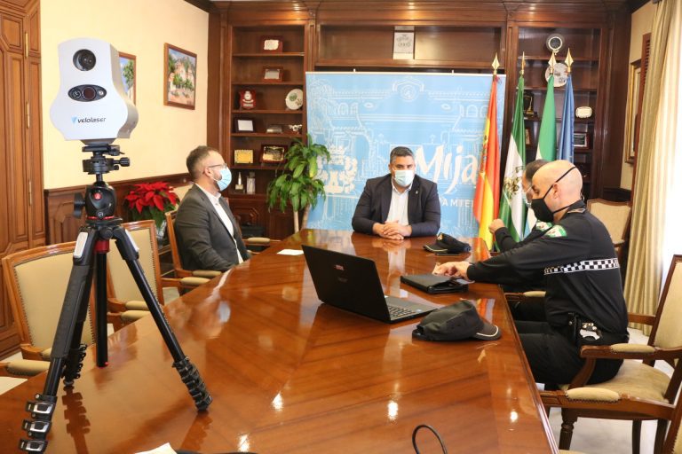 Mijas, 17 de diciembre de 2020.- El alcalde de Mijas, Josele González, y el concejal de Tráfico, Nicolás Cruz, han anunciado esta mañana la adquisición para la Policía Local de un nuevo dispositivo de control de velocidad móvil de última generación y homologado por la Dirección General de Tráfico. “Este cinemómetro cuenta con tecnología láser y es capaz de medir la velocidad en 20 milisegundos, los agentes de la policía local harán uso de este nuevo dispositivo en aquellas vías donde mayor afluencia de tráfico hay así como en aquellas donde se registra un mayor número de siniestros”, expuso el regidor que aclaró que “esta medida no tiene ningún afán recaudatorio sino preventivo y de concienciación, buscando que los conductores reduzcan la velocidad de sus vehículos a los límites establecidos en cada una de las vías”.