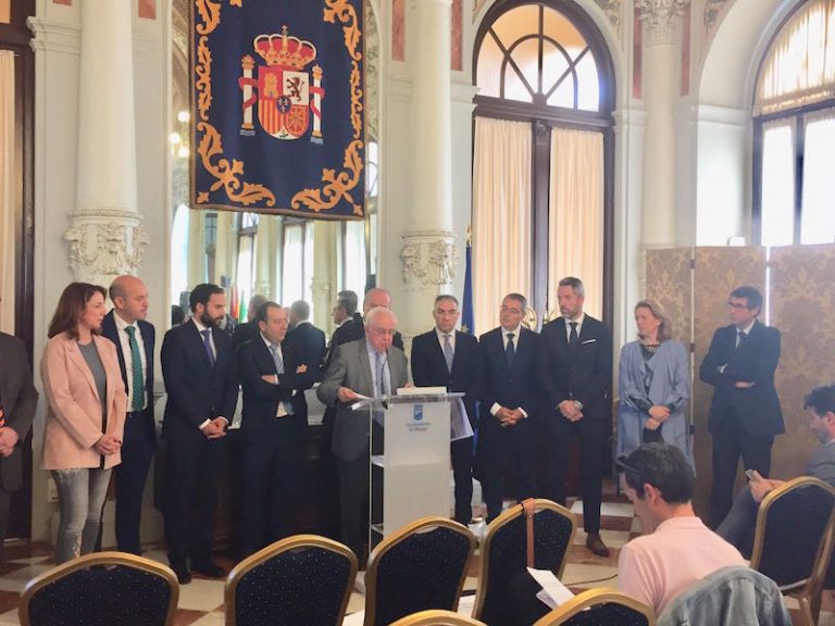 Mijas, 09 de noviembre de 2017.-El alcalde de Mijas, Juan Carlos Maldonado (Cs) y el edil de Infraestructuras, José Carlos Martín (Cs), han asistido esta mañana a la presentación del estudio para la vía perimetral de área metropolitana de Málaga que ha tenido lugar en el Ayuntamiento de la capital malagueña. El regidor de dicho municipio, Francisco de la Torre, ha sido el encargado de explicar el proyecto que, en una de sus fases, afecta al municipio mijeño. „Este proyecto plantea soluciones para los tramos más congestionados de la Costa del Sol lo que supone un avance dentro de las comunicaciones con Mijas del resto de localidades del litoral. Nosotros apoyamos toda actuación que signifique una mejora de este tipo sobre todo porque potencia la movilidad de los vecinos y de los turistas“, señala Maldonado.