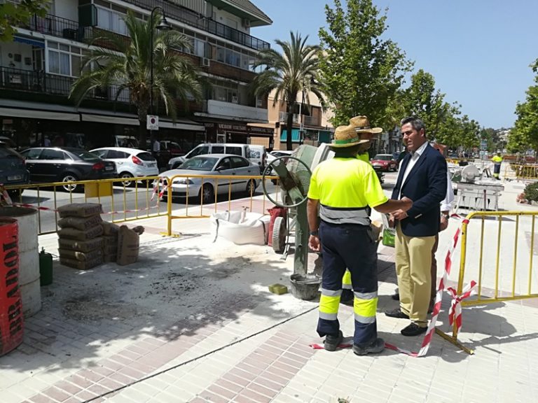 Maldonado visita las actuaciones de rebaje de aceras en la zona del bulevar de La Cala de Mijas