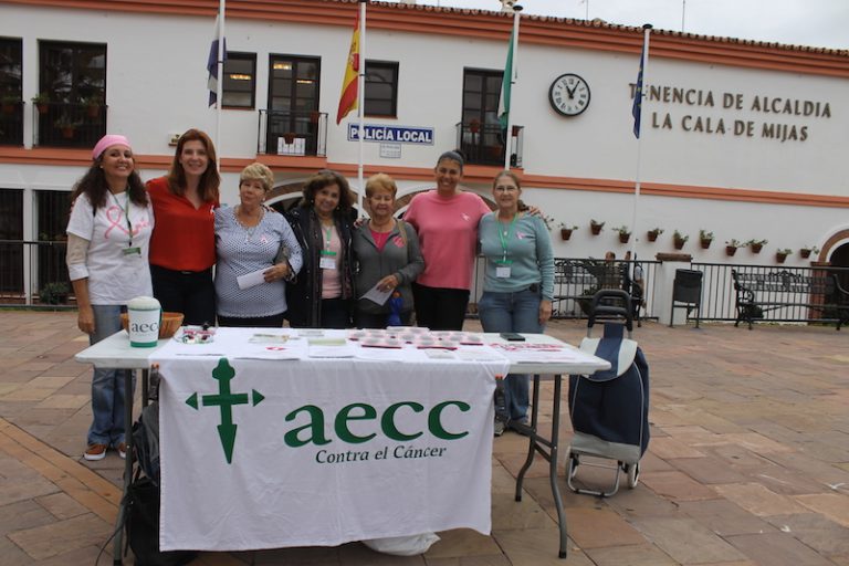 Mijas, 19 de octubre de 2017.-Mijas se suma un año más a la celebración del Día Mundial contra el Cáncer de Mama. Esta mañana la edil de Servicios Sociales, Mari Carmen Carmona (Cs), se ha acercado hasta la Tenencia de alcaldía de La Cala para acompañar a las voluntarias de la Asociación Española contra el Cáncer (AECC) en una de sus mesas informativas. „La prevención es esencial así como un diagnóstico precoz. El año pasado se detectaron 25.000 nuevos casos. Estas mesas además de informar ayudan mucho a la concienciación sobre lo importante que es que cada mujer se explore y, ante el menor signo de sospecha, hay que acudir al médico“, apunta.