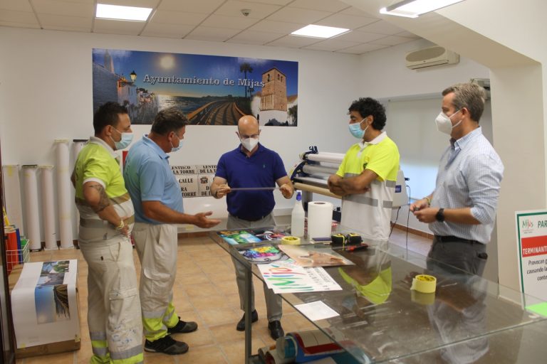 Mijas, 20 de julio de 2021.- El edil de Servicios Operativos, José Carlos Martín, ha presentado esta mañana la nueva maquinaria adquirida para el departamento de Rotulación y de Imagen. En este caso se trata de un plóter de impresión y corte para vinilo y pegatinas, una plastificadora y un equipo informático con los programas correspondientes. “Este departamento es el más desconocido, pero un gran conocido por el resto de áreas. Prácticamente toda la rotulación se lleva a cabo aquí, y lo que se ha querido es dar un impulso, modernizar todos los equipos que el área tenía que ya eran antiguos y que evidentemente suponían que nuestra productividad no era la más idónea”, apunta el concejal.