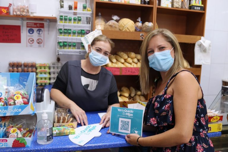 Mijas, 26 de agosto de 2021.- Yo me quedo en Mijas es la primera marketplace del Ayuntamiento de Mijas que permitirá a comerciantes de la localidad promocionarse y vender sus productos y servicios de forma online y totalmente gratuita. Una actividad pionera en el municipio que esta semana se ha promocionado a pie de calle en diferentes comercios de los tres núcleos, Las Lagunas, La Cala y Mijas Pueblo.