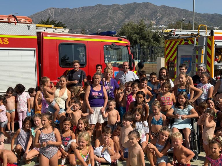 Los Bomberos de Mijas acercan su labor al alumnado de la escuela de verano del Colegio Tamixa