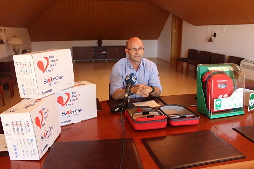 Mijas, 26 de julio de 2016.-El Ayuntamiento de Mijas ha adquirido cinco nuevos desfibriladores externos semiautomáticos (DESA) en los cuales ha invertido un total de 6.400 euros. Este tipo de maquinaria viene a crear nuevos espacios cardioprotegidos que adquieren suma importancia ante una situación de emergencia donde pueden suponer la diferencia entre la vida o la muerte para una persona a la que le ha dado un episodio cardiaco grave. Así pues, el edil de Recursos Humanos y Riesgos Laborales, José Carlos Martín, ha presentado esta mañana este tipo de aparatos que estarán instalados en el propio Consistorio, las Tenencias de Alcaldía de la Cala y Las Lagunas, Servicios Sociales y la nave de los Servicios Operativos. Estos cinco DESA se suman a los ya instalados en el Polideportivo de Las Lagunas y al que lleva consigo uno de los vehículos de Bomberos.