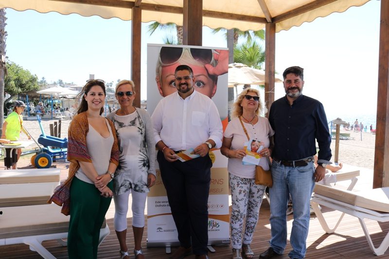 Mijas, 09 de agosto de 2018.- El Ayuntamiento de Mijas ha presentado esta mañana una nueva campaña de turismo fotosaludable dirigido a extranjeros. Esta nueva iniciativa se centrará en la exposición de carteles informativos en diferentes puntos del litoral mijeño y reparto de folletos, así como la emisión de un vídeo promocional dirigido al público extranjero y que se emitirá hasta en cuatro idiomas: danés, inglés, alemán y español.