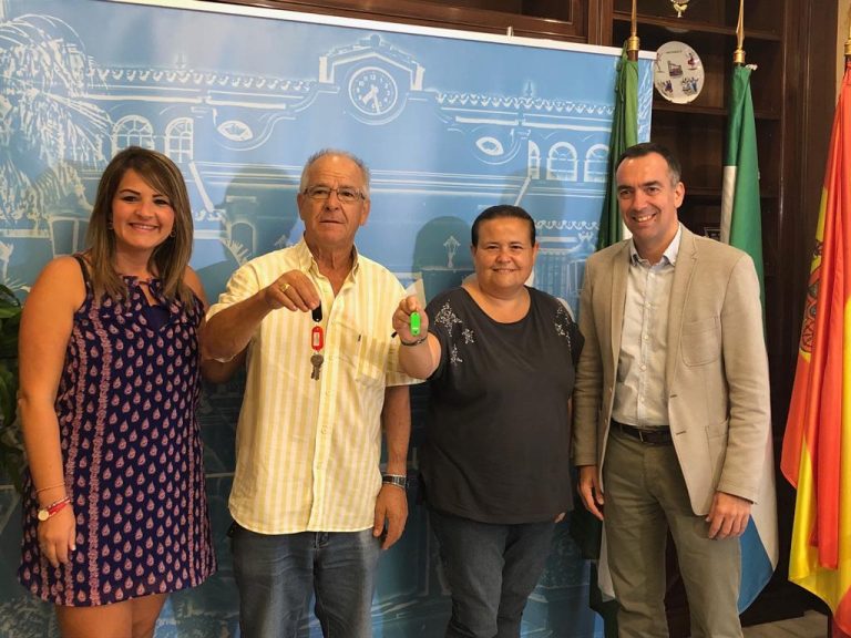 Mijas, 20 de septiembre de 2019.- El edil de Patrimonio, Andrés Ruiz y la concejala de Participación Ciudadana, Tamara Vera, han entregado esta mañana las llaves de un local de 130 metros cuadrados a la Asociación de Vecinos de La Alquería. El Ayuntamiento cede así este inmueble para que este colectivo pueda desarrollar sus actividades sociales y culturales. El convenio rubricado entre ambas partes contempla un periodo de cuatro años renovables. “Es positivo que el Consistorio ponga al servicio de los vecinos este tipo de espacios municipales, sobre todo, cuando se trata de asociaciones que tienen una gran actividad y que colaboran activamente con la ciudadanía. En este caso, ya no son solo los talleres y expresiones culturales y tradicionales, sino también las iniciativas solidarias que organizan”, señala Ruiz quien ha destacado que “en el mismo enclave tendrán lugar las clases de la Universidad Popular afianzando así esta formación en esta zona rural”.