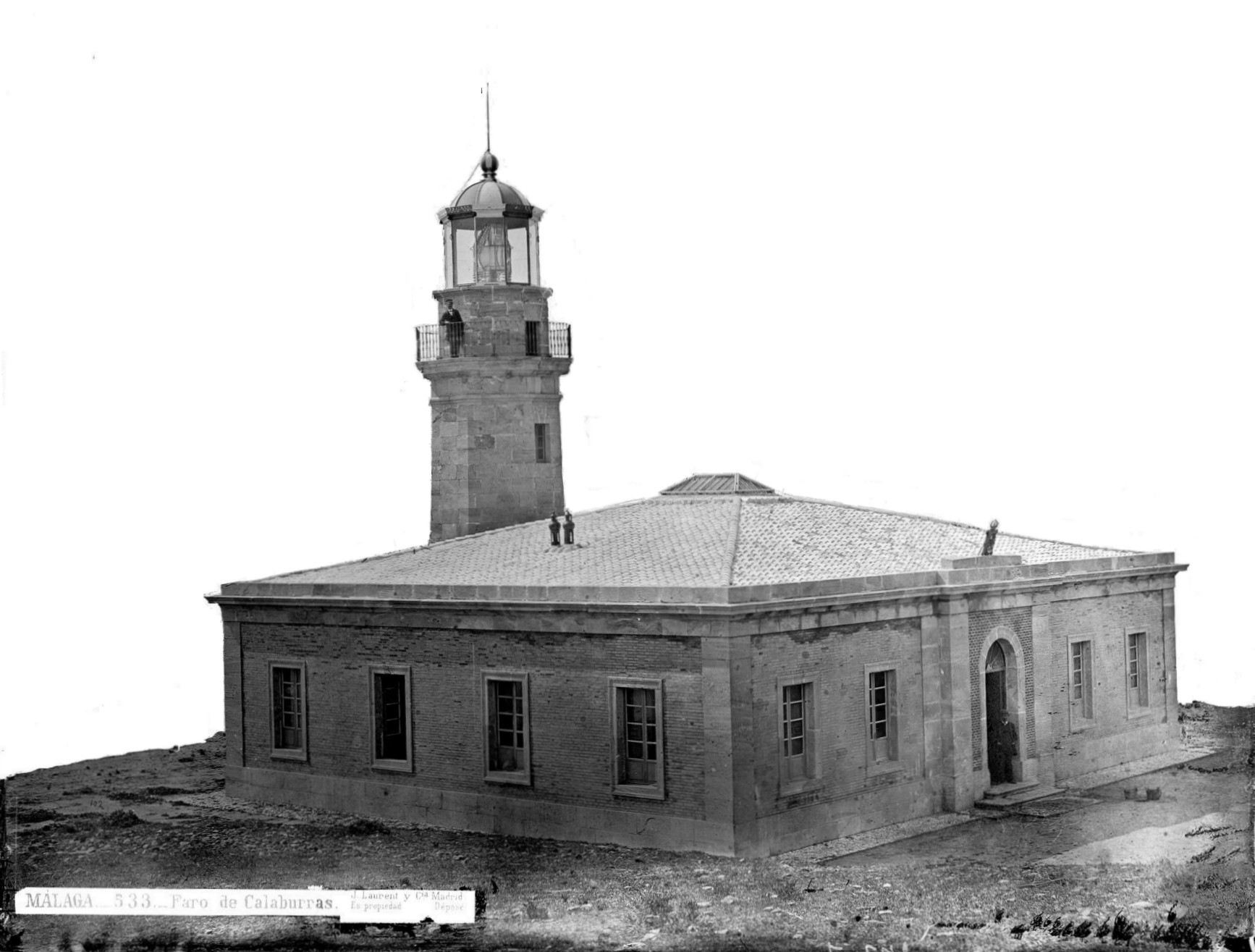 El Faro de la Punta de Calaburras fue proyectado en 1861 y entró en servicio en agosto de 1863 sobre el promontorio de su mismo nombre, con un sistema de iluminación de luz fija con una lámpara que quemaba aceite de oliva y que daba destellos cada 3 segundos, la cual tenía un alcance de 16 millas. Su torre era de forma octogonal y su foco de luz se encontraba a unos 14 metros de altura sobre el suelo y a 35,5 sobre el nivel del mar. Delante de la torre, en su lado sur, se construyó un edificio de planta rectangular que albergaba la vivienda del farero y otras dependencias auxiliares del faro.