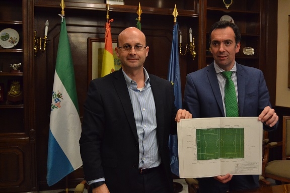 El césped del campo de fútbol de Osunillas sale a licitación esta semana y estará finalizado para el comienzo de la temporada deportiva. El edil de Infraestructuras, José Carlos Martín y el concejal de Urbanismo, Andrés Ruiz, han presentado esta mañana este proyecto que cuenta, a su vez, con otras actuaciones de mejora. “Se trata de un compromiso del Ayuntamiento con el CD Mijas. Queremos equipararlos al resto de campos de fútbol del municipio y que de esta manera puedan disfrutar los usuarios de unas buenas instalaciones”, apunta Martín.