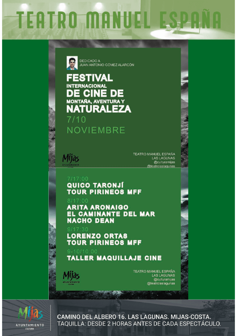 Los días 7, 8, 9 y 10 de noviembre, tendrá lugar el Festival de Cine de Naturaleza. Encuentros, proyecciones, charlas y más para todos los amantes de naturaleza. La entrada es libre hasta completar aforo.