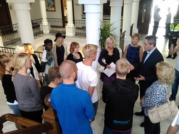 El Alcalde de Mijas, Juan Carlos Maldonado (C’s) recibe en el Ayuntamiento a los alumnos daneses de Svendborg.