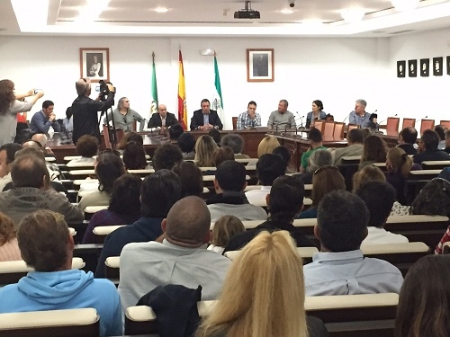 17 de Noviembre de 2015. El Alcalde de Mijas, Juan Carlos Maldonado (C´s) ha tenido el primer gesto, tras recibir una gran ovación por parte de un centenar de vecinos que han estado presentes en la reunión sobre la Plaza Virgen de la Peña en el Salón de Plenos del Consistorio, y se ha dirigido a pie hacia los obreros que están acometiendo las primeras roturas y los primeros movimientos de tierra del entorno de la plaza para pedirles que cesen los trabajos, por lo menos hasta mañana antes de que se produzca una reunión entre todas las partes y el Consorcio Qualifica. « Esta ha sido una reunión intensa y necesaria. Es cierto que hay que escuchar la voz de los vecinos y que se tenía que haber escuchado mucho antes, es un proyecto de la anterior legislatura, si se les hubiera tenido en cuenta antes no tendríamos este problema. En el próximo pleno se va a aprobar el Reglamento de Participación Ciudadana que formará el Consejo Social de la ciudad lo que va a permitir contar con la opinión de todos antes de acometer distintas infraestructuras y actuaciones. Como equipo de gobierno, ante todo y sobre todo escucharemos al pueblo para evitar estas situaciones ». Por eso, el primer paso ha sido arrancar un compromiso a Alcaldía de paralización antes de continuar con lo que los vecinos han calificado de « tremendo error ». Maldonado que desde hace varios días tenía conocimiento del disgusto de los vecinos y comerciantes tras el encuentro que mantuvieron la semana pasada con el responsable de la delegación de Turismo, Santiago Martín en el mismo escenario el Salón de Plenos, donde se les explicó el plan a acometer, ha intentado expresar los pasos que se iban a dar desde hoy para intentar corregir este proyecto que lleva en proceso cuatro años y que en los último años estaba paralizado.