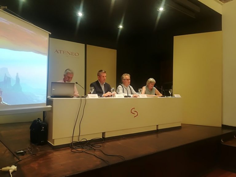 Mijas, 20 de junio de 2017.- El edificio del Ateneo de Málaga ha sido protagonista de la presentación del libro del poeta y catedrático de Derecho Constitucional Eduardo Martínez. El alcalde de Mijas, Juan Carlos Maldonado (Cs) ha presidido la mesa en un acto solemne al cual ha asistido también el concejal de la Universidad Popular, Hipólito Zapico (PSOE). « Vía Crucis Cátaro. Réquiem por un genocidio », es el poemario de este vecino mijeño donde se hace un homenaje histórico-poético a aquellos ‘herejes’ que en 1244 acabaron masacrados en el castillo de Montségur, su último santuario, sin abdicar de sus principios morales. « Tenemos que agradecer a este ilustre vecino que, aun sin haber nacido en Mijas, lleve siempre el nombre de nuestro municipio por bandera. Es todo un honor que una persona de esta riqueza intelectual haya decidido pasar sus años de jubilación en nuestro pueblo », señala Maldonado.