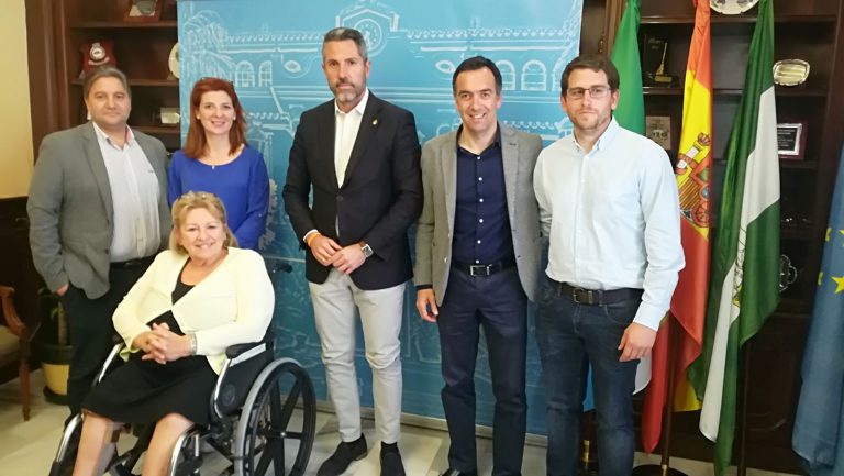 Mijas, 19 de abril de 2018.- El alcalde de Mijas, Juan Carlos Maldonado (Cs) y los ediles de Patrimonio y Servicios Sociales, Andrés Ruiz (Cs) y Mari Carmen Carmona (Cs), respectivamente, se han reunido esta mañana con la presidenta de AFESOL, Concha Cuevas y el presidente de ADIMI, Cristóbal Moreno para analizar espacios municipales donde poder ubicar el Centro Especial de Empleo (CEE) de dicha organización. « Una cosa es clara y es que este equipamiento va a estar en el municipio. Estamos estudiando diferentes ubicaciones en Las Lagunas pues consideramos que la labor que realizan cada día es encomiable y desde el Consistorio queremos seguir colaborando para que lleven a cabo su proyecto », señala Maldonado.