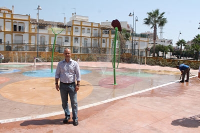 Mijas, 7 de septiembre de 2016.-El Parque del Agua de Las Cañadas ya se encuentra disponible para que los niños de la barriada puedan disfrutar en estos primeros días de septiembre de estas nuevas instalaciones novedosas en la ciudad. El concejal de Infraestructuras del Ayuntamiento de Mijas, José Carlos Martín, ha recepcionado esta mañana las obras que ya han finalizado tras tres meses de ejecución y una inversión de 162.000 euros. « Estamos muy contentos porque los pequeños podrán hacer uso de este nuevo parque tan original que supone una apuesta más para revitalizar el núcleo de Las Lagunas. Es pionero en el municipio al contar con los juegos de agua. Quien lo desee puede hacer uso del espacio como es habitual con paseos, descanso de los mayores o juegos al uso o bien probar estas novedades y refrescarse », señala el concejal.
