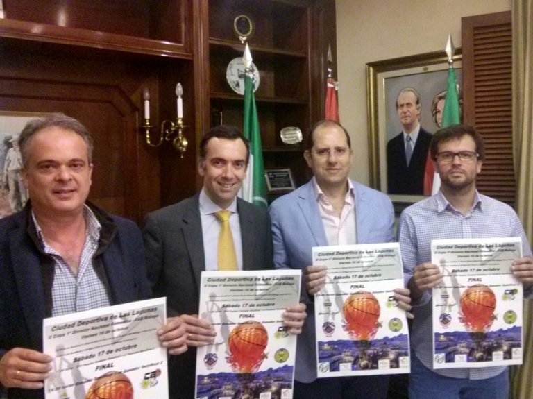 13 de Octubre de 2015. Hoy, en la Sala de Juntas del Ayuntamiento de Mijas, Andrés Ruiz, Concejal de Deportes Federados (C’s), junto a Ricardo Bandrés, Delegado Provincial y Vicepresidente de la Federación Andaluza de Baloncesto, y Ángel Gutiérrez, Gerente del C.B. Mijas, han presentado la Copa Primera Nacional de Baloncesto Femenino que tendrá lugar en las instalaciones del Polideportivo de Las Lagunas los días viernes y sábado, 16 y 17 de octubre. Los cuatro equipos disputarán las semifinales el viernes, con un primer enfrentamiento a las 19:30 hrs. entre El Alhaurín de la Torre y el EGM Málaga, y un segundo a las 21:30 hrs. entre el CB Mijas y el CB Presentación. Durante la jornada del sábado, jugarán por el tercer y cuarto puesto a las 17:00 hrs., y la final a las 19:00 hrs.
