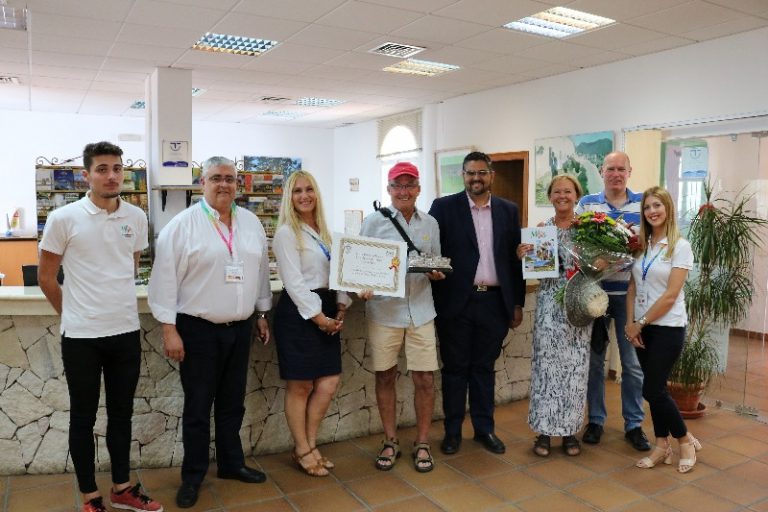 Mijas, 12 de junio de 2018.- El municipio de Mijas es símbolo de turismo de calidad y atenciones al visitante, así lo ha destacado el concejal encargado del departamento de Turismo, Josele González (PSOE), tras obsequiar hace unos días a Richard Larsson, el visitante dos millones a la oficina de atención al turista situada en Mijas Pueblo.