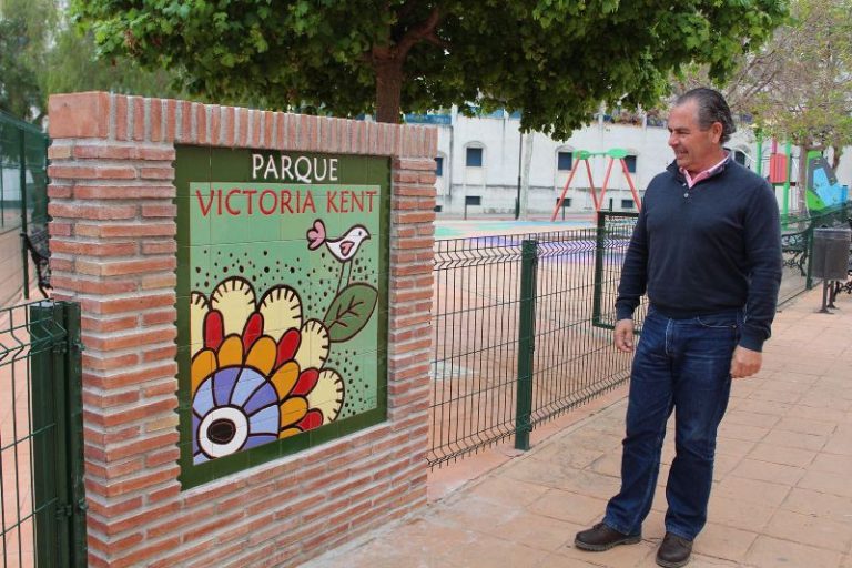 Mijas, 10 abril de 2018.- El concejal de Parques y Jardines, Juan Antonio Carrasco (PSOE), ha visitado esta mañana el parque Victoria Kent para comprobar el nuevo mural instalado a la entrada de este y otros parques del municipio enmarcado dentro del Plan de embellecimiento y mejoras previsto para este ejercicio.
