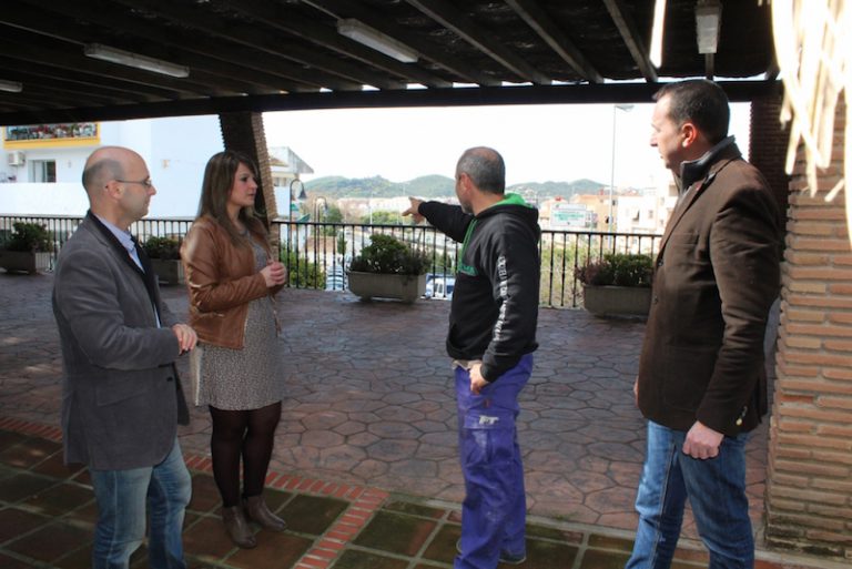 Mijas, 16 de marzo de 2017.-Los concejales de Tercera Edad, Tamara Vera (PSOE), y de Infraestructuras, José Carlos Martín (C´s), han visitado esta mañana el Hogar del Jubilado de Las Lagunas para comprobar de primera mano el estado de los trabajos de reparación de la pérgola dañada por el fuerte temporal de hace apenas unas semanas.