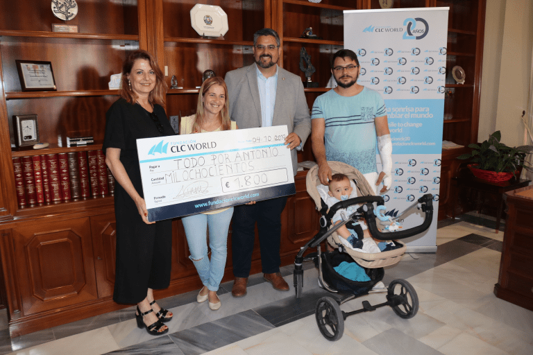 Mijas, 04 de octubre de 2019.- La Fundación CLC World ha hecho entrega de un donativo de 1.800 euros a Antonio, un niño mijeño de 15 meses, que padece una distrofia muscular congénita, llamada miopatía de Ulrich, que permitirá cubrir los costes de las terapias de rehabilitación que el pequeño necesita durante los próximos tres meses. Una acción solidaria ha sido posible gracias a la mediación del Ayuntamiento de Mijas, que puso en conocimiento de este caso a la Fundación.