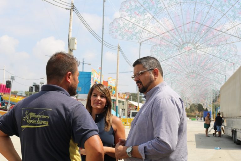 El primer teniente de alcalde y concejal de Eficiencia y Energía, Josele González (PSOE), y la concejala de Fiestas, Tamara Vera (PSOE), han visitado esta mañana las instalaciones del recinto ferial y han explicado que la intención de esta iniciativa es la de ambientar con responsabilidad unas jornadas festivas dirigida a todos los públicos.