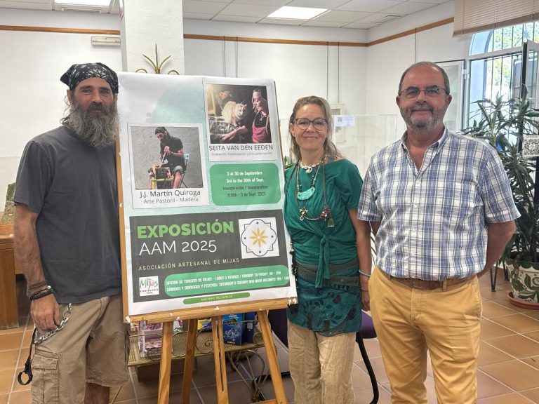 Mijas, 3 de septiembre de 2025.- El Ayuntamiento de Mijas, a través de la Concejalía de Turismo, ha inaugurado la exposición de septiembre de la Asociación Artesanal de Mijas (AAM), una cita que este mes acerca a vecinos y visitantes el trabajo de dos creadores que representan la tradición y la autenticidad del municipio.