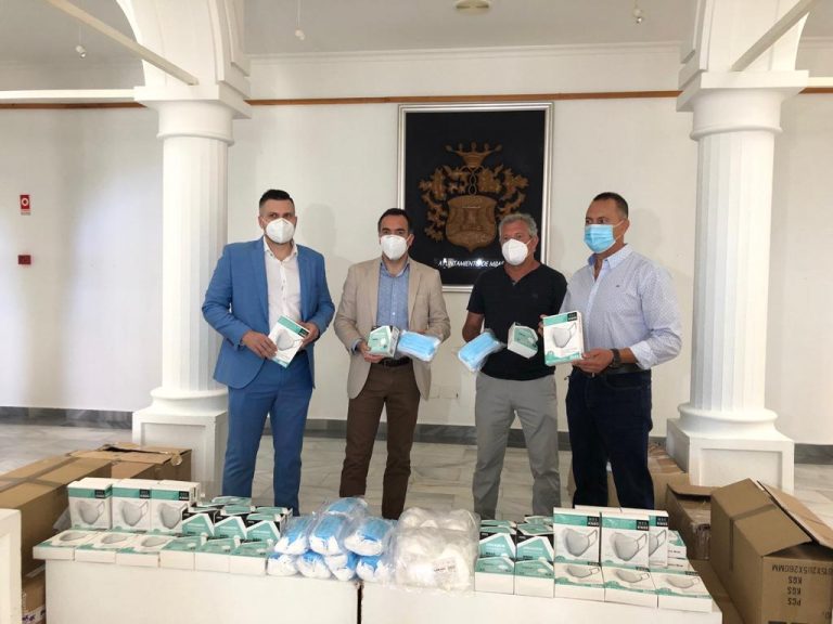 Los comerciantes mijeños reciben una donación de 14.000 mascarillas para poner en marcha su actividad