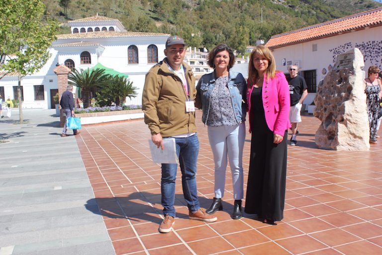 Mijas, 03 abril 2017.- La concejala de Turismo, Fuensanta Lima (PSOE), junto a la consejera delegada de Mijas Servicios Complementarios, Laura Moreno (PSOE), han informado esta mañana sobre el nuevo servicio de informador turístico que ya se encuentra funcionando en Mijas Pueblo.