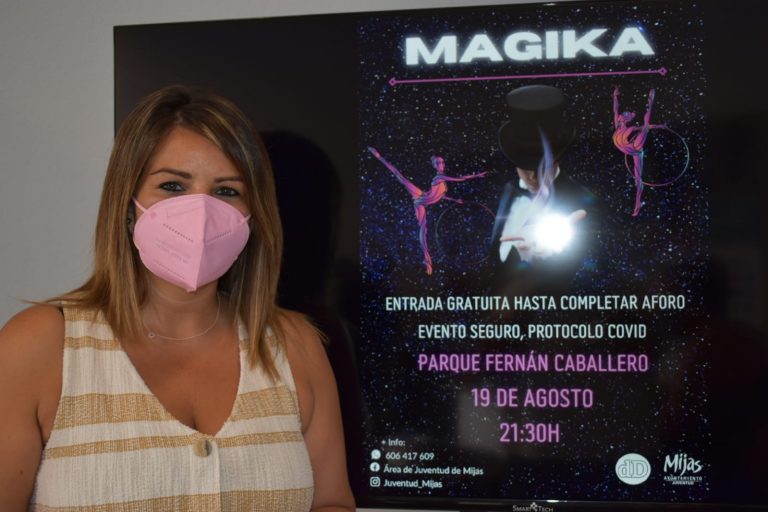 Mijas, 18 de agosto de 2021.- La magia fusionada con las acrobacias más espectaculares llegan al Parque Fernán Caballero de Las Lagunas de la mano de ‘Magika’, el nuevo espectáculo que pone a pie de calle el área de Juventud del Ayuntamiento de Mijas. La cita tendrá lugar el próximo 19 de agosto, a las 21.30 horas.