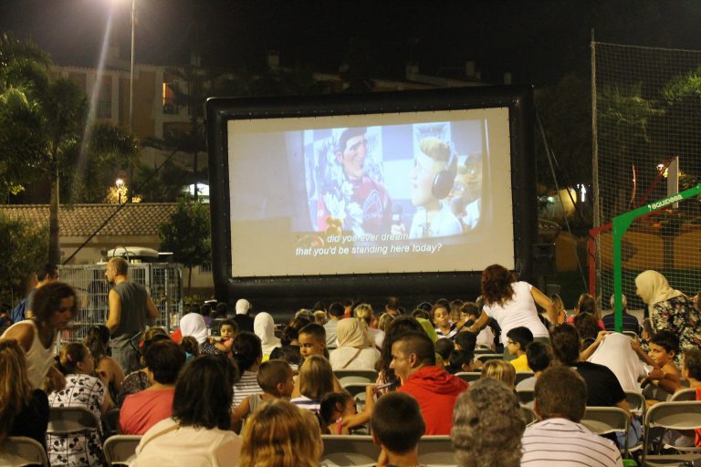 Mijas. (Málaga) 7 de Septiembre de 2015. Nuevo éxito del cine de verano. Por segundo año consecutivo el Ayuntamiento de Mijas, por medio de la Concejalía de Juventud, organizó esta cita lúdica, gratuita y para todos los públicos a la que, según los datos que maneja el propio departamento municipal, acudieron más de 2.000 personas.