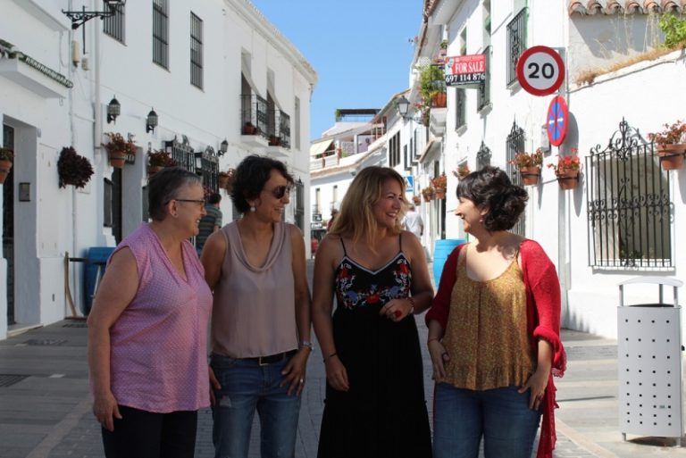 Mijas, 29 de junio de 2018.- La calle Málaga, una de las zonas más comerciales de Mijas Pueblo volverá este verano a contar con un horario especial y restringido al tránsito de vehículos, así lo ha anunciado la concejala de Comercio del Consistorio mijeño, Laura Moreno (PSOE), junto a comerciantes de la zona.