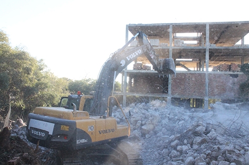Mijas derriba la estructura de un edificio en construcción abandonado de Calahonda