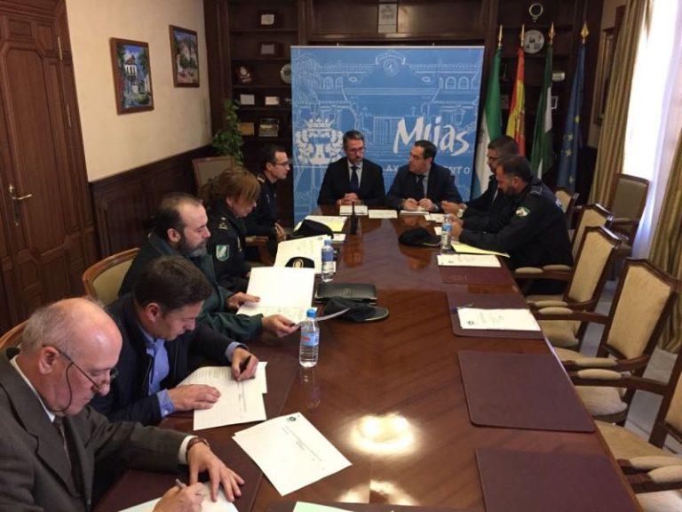 Mijas, 21 de marzo de 2018.- El alcalde de Mijas, Juan Carlos Maldonado (Cs) ha recibido esta mañana al subdelegado del gobierno, Miguel Briones para celebrar la Junta Local de Seguridad del municipio de cara a la Semana Santa. « En Mijas seguimos trabajando con paso firme. Una vez más la criminalidad baja en nuestro municipio, en esta ocasión un 3 por ciento respecto al año pasado, lo que significa que vamos avanzando cada día más en esta materia. El espíritu de colaboración entre administraciones ayuda a conseguir estas cifras cada vez más mermadas y la colaboración entre las fuerzas de seguridad y la policía local hace, a su vez, que nuestra ciudad se sitúe como uno de los destinos turísticos del litoral más seguros », apunta el regidor.