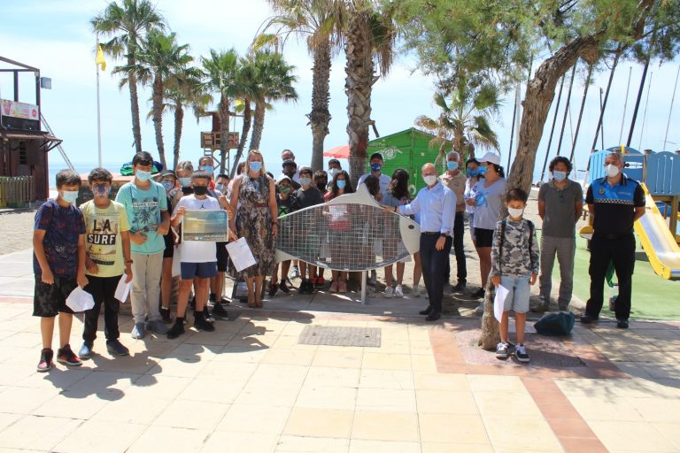 Mijas inaugura una escultura en forma de pez para depositar los tapones de plástico