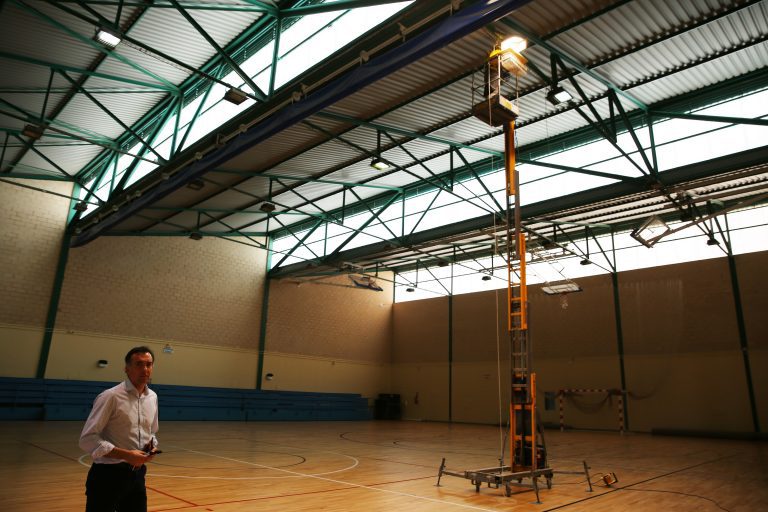 Mijas, 22 de junio de 2020.- El edil de Deportes, Andrés Ruiz, ha anunciado esta mañana que en el Pabellón de Osunillas ya se está renovando la luminaria pasando de halógena a tecnología LED siguiendo así la misma línea que el resto de instalaciones deportivas de la ciudad. “Esta es una actuación que mejora aún más este espacio donde ya hemos realizado otras iniciativas que vienen a darle un plus de calidad a las instalaciones y, en consecuencia, a hacerlas más cómodas y eficientes de cara a los usuarios”, asegura el concejal.