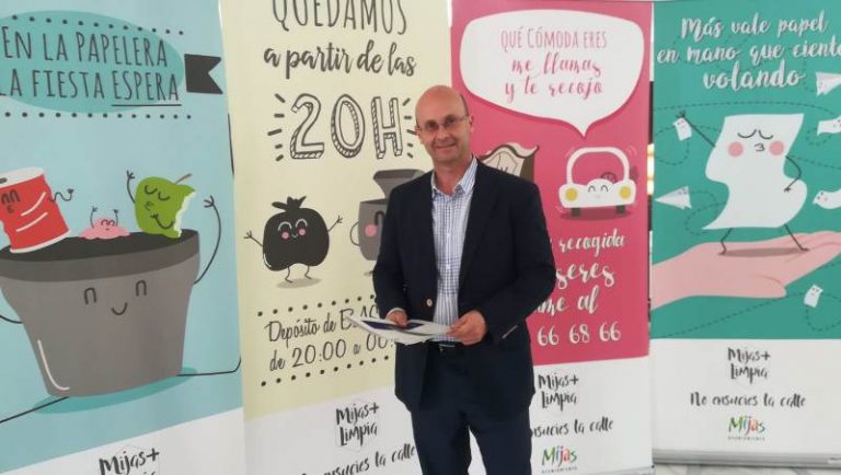Mijas, 21 de junio de 2018.- El edil de Recogida y Tratamiento de Residuos, José Carlos Martín (Cs), ha anunciado esta mañana que la concejalía ha reforzado la campaña de sensibilización sobre el depósito de basura y recogida de enseres puesta en marcha por el Ayuntamiento llevándola a los centros educativos y a las asociaciones de la ciudad. Bajo la marca ‘Mijas más limpia’, el departamento pone en marcha una iniciativa ambiciosa con publicaciones en medios de comunicación y redes sociales así como todo tipo de actividades y merchandising. « Queremos llegar a todos los públicos y por ello hemos dividido en tres las fórmulas de actuación. Por un lado los colegios a través de talleres dinámicos, por otro los colectivos con charlas y exposiciones y, finalmente, la ciudadanía en general a través de puntos informativos puestos en marcha a lo largo del término municipal », apunta Martín.