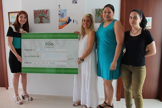 Mijas, 22 de junio de 2016.- La edil de Asuntos Sociales del Ayuntamiento de Mijas, Mari Carmen Carmona, ha hecho entrega esta mañana de los cheques valorados en 65.000 euros que el Consistorio ha concedido a tres entidades del municipio: la Asociación de Familiares de Enfermos de Alzheimer (AFA) Fuengirola- Mijas Costa, la Asociación de Familiares de Enfermos de Alzheimer de Mijas Pueblo y Cruz Roja. Estas cantidades van a contribuir a que estos organismos puedan desarrollar programas y servicios en ayuda de los colectivos a los que benefician. « No son las únicas prestaciones que vamos ofrecer durante el 2016. A lo largo del año seguiremos ayudando a aquellos que lo necesitan y contribuyendo a que proyectos que benefician a la comunidad salgan adelante », apunta la concejala.