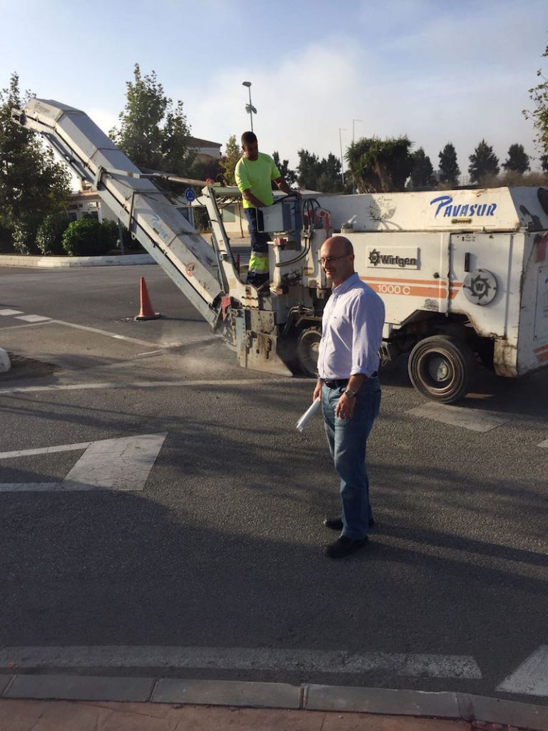 Mijas, 7 de octubre de 2016.-El concejal de Servicios Operativos del Ayuntamiento de Mijas, José Carlos Martín (Cs), ha visitado esta mañana la avenida Mare Nostrum de La Cala donde este departamento municipal está realizando labores de mantenimiento de asfalto. Esta tarea se realiza periódicamente para mantener en condiciones óptimas las infraestructuras de la localidad, sobre todo, cuando se trata de socavones y blandones en la calzada que no necesitan de una gran actuación.