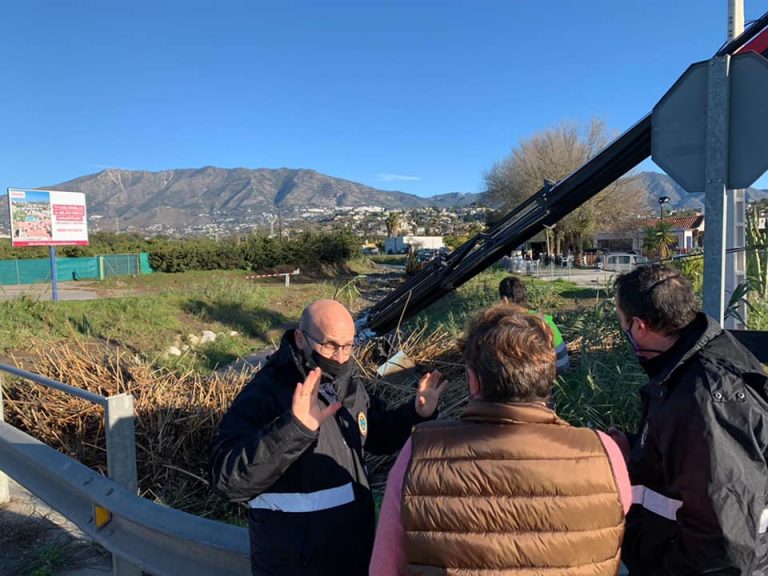 Mijas, 14 de enero de 2021.- El edil de Servicios Operativos, José Carlos Martín, ha visitado esta mañana los trabajos que están desempeñando desde el departamento para reparar los daños causados por el temporal Filomena. “Este fenómeno meteorológico nos ha dejado consecuencias, no solo en las playas, sino también en carreteras, caminos, muros, vallas o alumbrado público que estamos ya solucionando”, apunta el concejal.
