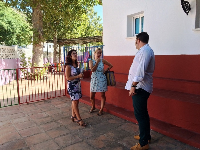 Mijas, 1 de septiembre de 2015.- La concejala de Educación, Carmen Márquez, y el coordinador municipal de los Servicios Operativos, Daniel Gómez, han estado hoy en la escuela infantil de Mijas Pueblo, coincidiendo con el inicio del curso escolar en estos centros educativos, para supervisar las mejoras de mantenimiento que se han acometido en sus instalaciones y en el resto de guarderías municipales durante la época no escolar. Hoy han comenzado las clases para un total de 801 niños de entre 0 y 3 años en el municipio, tanto en centros municipales como los de gestión privada.