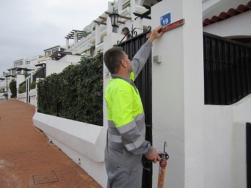 El concejal de Vía Pública, Juan Carlos González, ha estado hoy en la calle Urano de la urbanización Riviera del Sol, donde los trabajadores de este departamento municipal han colocado hoy las nuevas placas de los números correspondientes a cada vivienda o conjunto residencial. Los trabajos se alargarán durante el todo el mes, aproximadamente, y se pretende instalar dichas placas en todas las viviendas de Riviera del Sol.