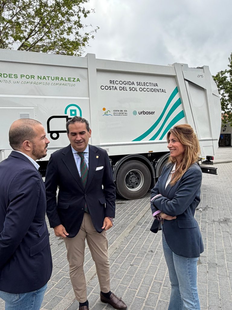 Mijas, 27 de abril de 2026.- La Mancomunidad de Municipios de la Costa del Sol Occidental y Urbaser han presentado oficialmente tres nuevos camiones recolectores que se incorporan al servicio de recogida selectiva de papel-cartón y envases, en el marco del nuevo contrato adjudicado a la compañía. Estos vehículos suponen un importante avance en eficiencia, sostenibilidad ambiental y mejora del servicio público del servicio de recogida en toda la Costa del Sol.