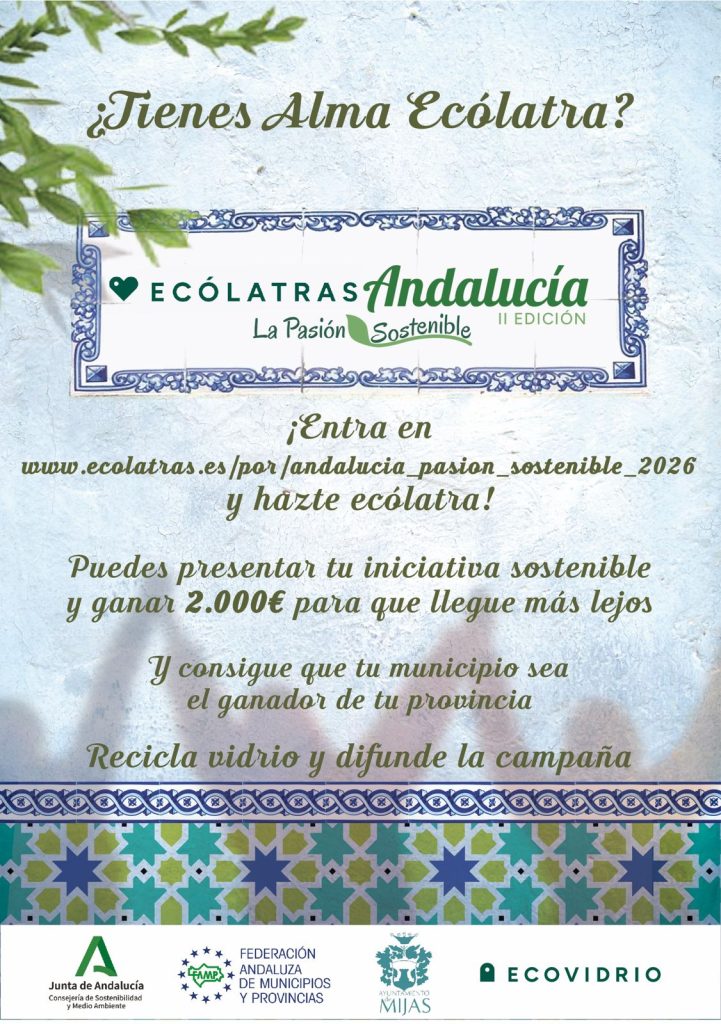 Mijas, 11 de marzo de 2026.- El Ayuntamiento de Mijas participa en la II edición de la campaña ‘Ecólatras Andalucía’, una iniciativa promovida por Ecovidrio en colaboración con la Junta de Andalucía y la Federación Andaluza de Municipios y Provincias (FAMP), que se desarrollará del 4 de marzo al 5 de mayo en 80 municipios andaluces con el objetivo de reconocer iniciativas ciudadanas que contribuyan al cuidado del medio ambiente y al fomento del reciclaje de vidrio.